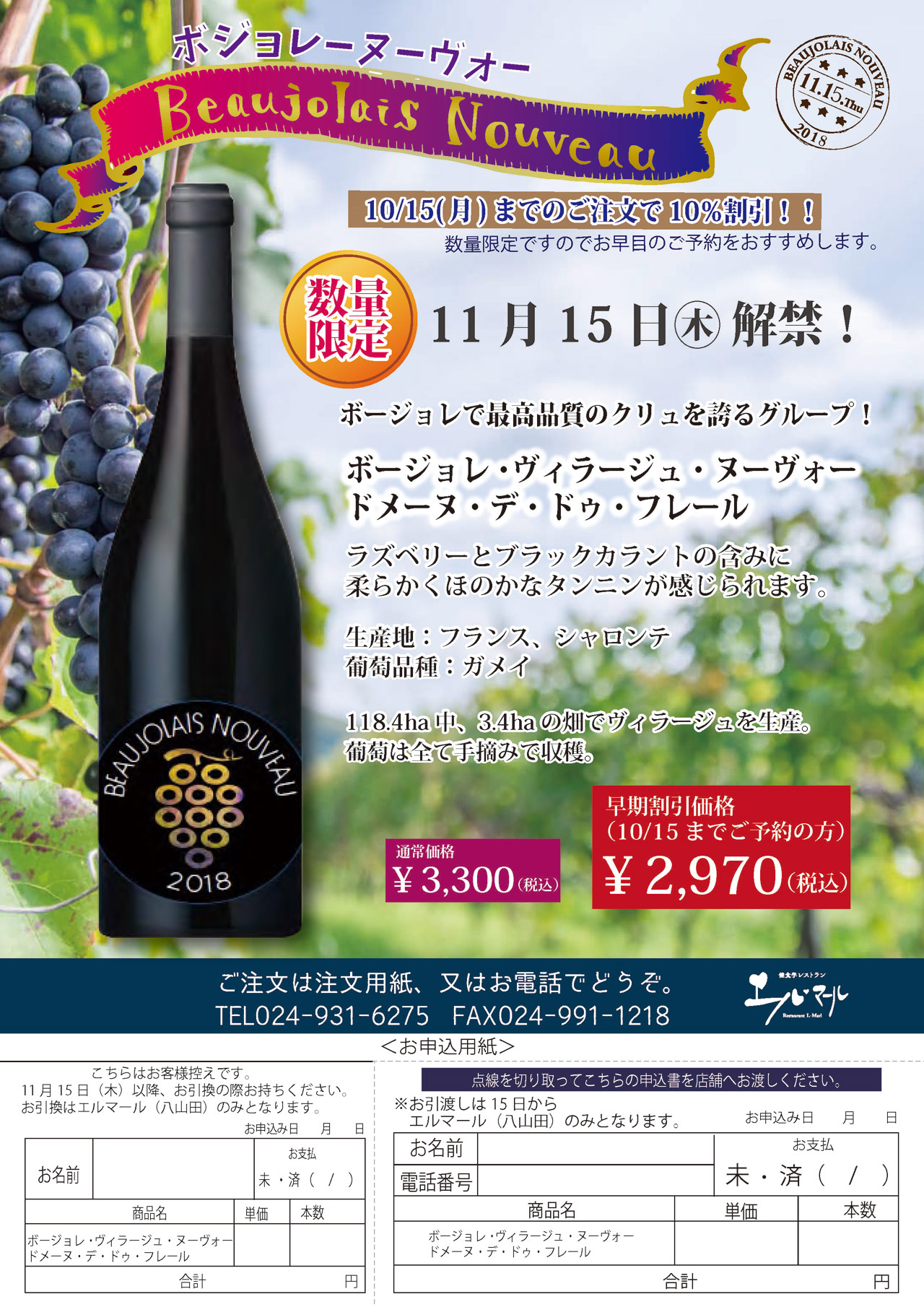 | 2018/9/5 | ★ボージョレヌーヴォー★ 11月15日(木)解禁! | |
