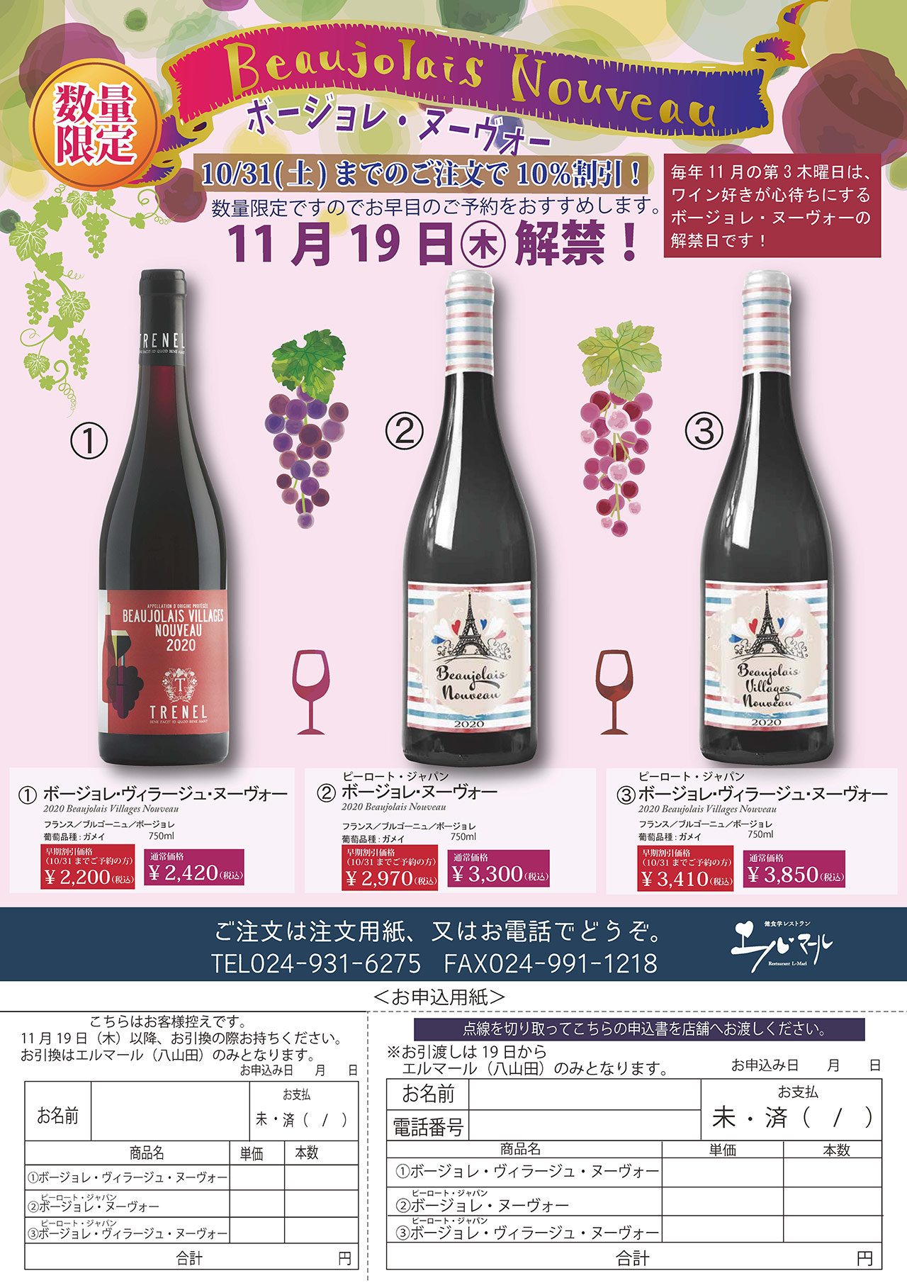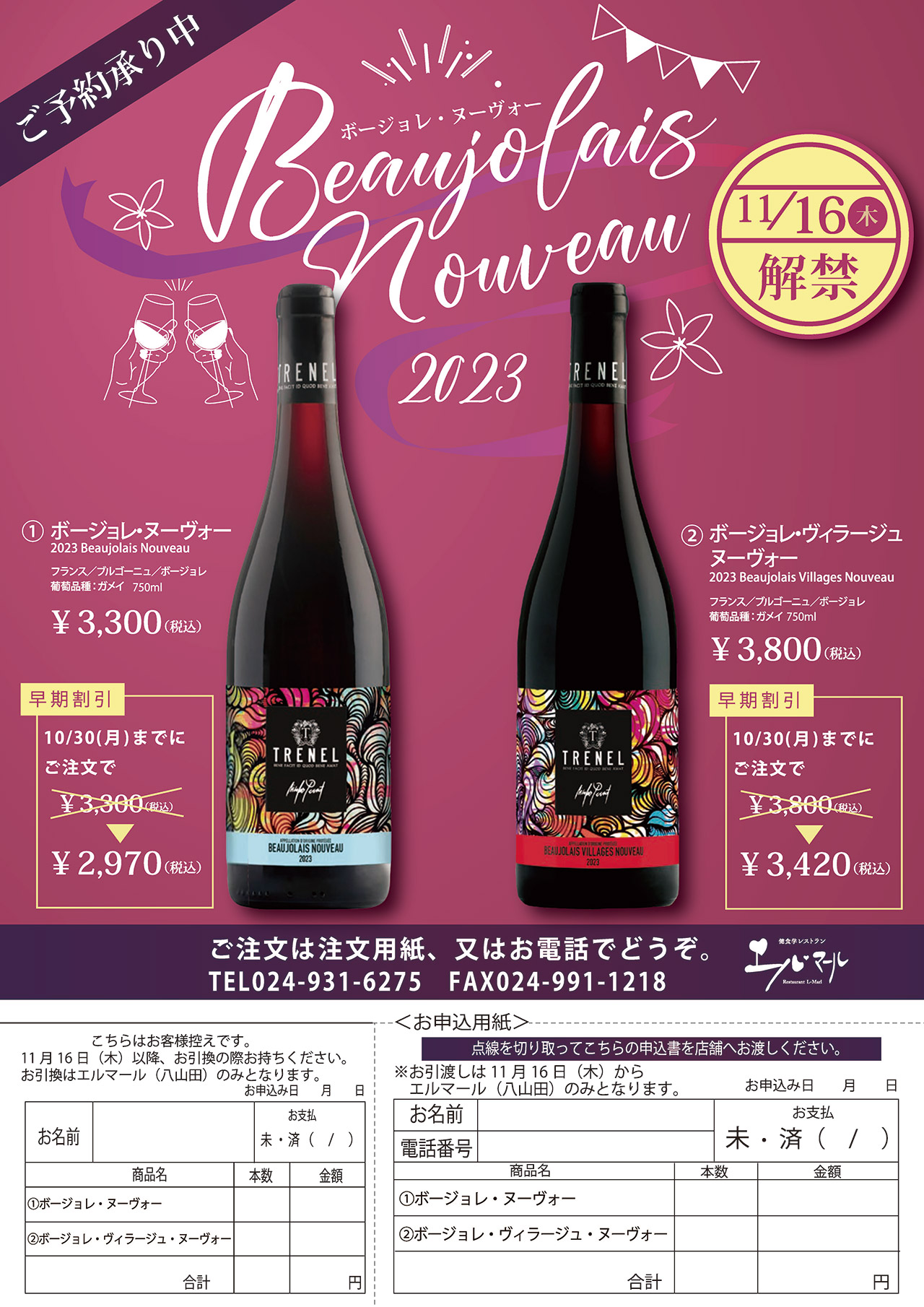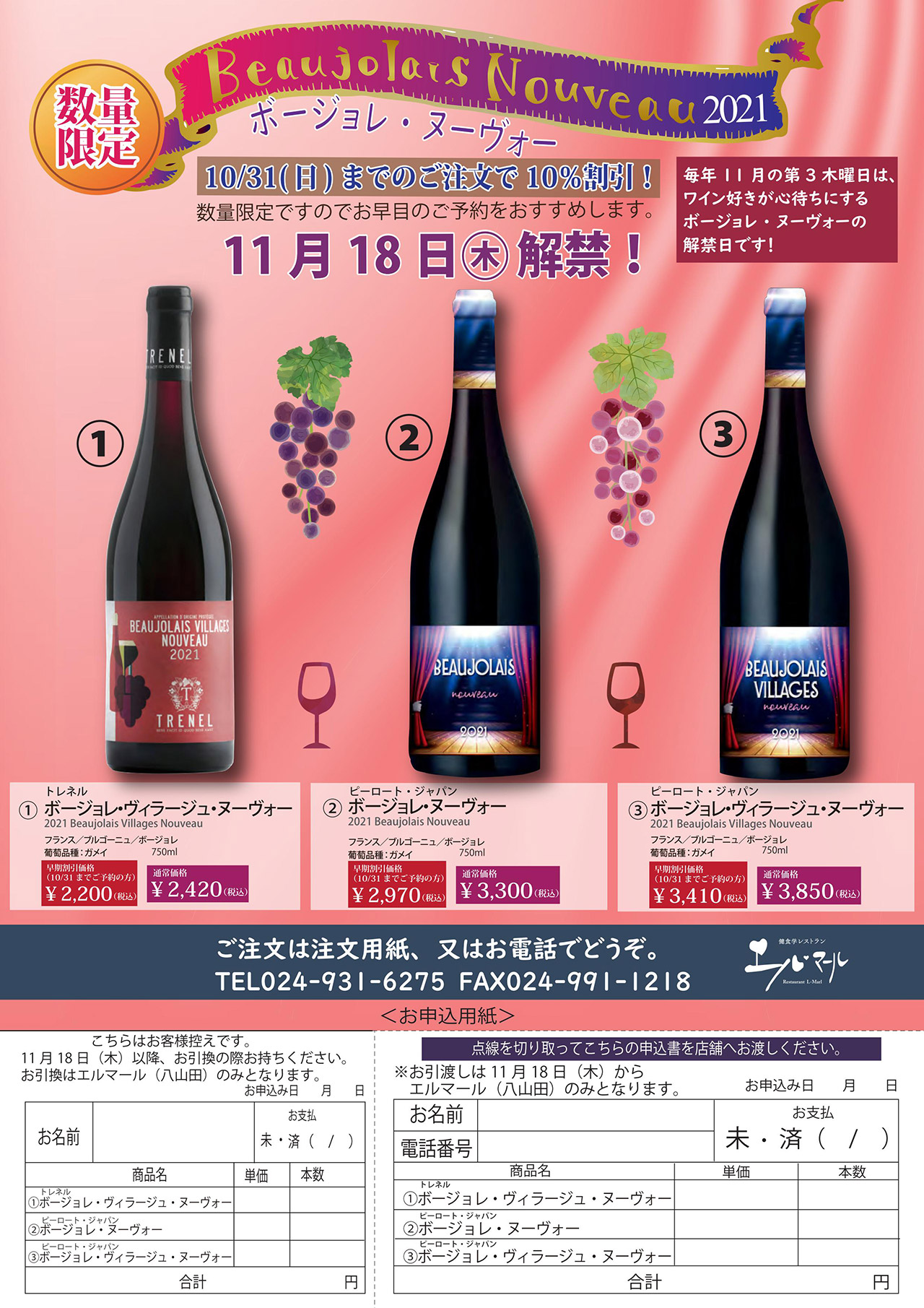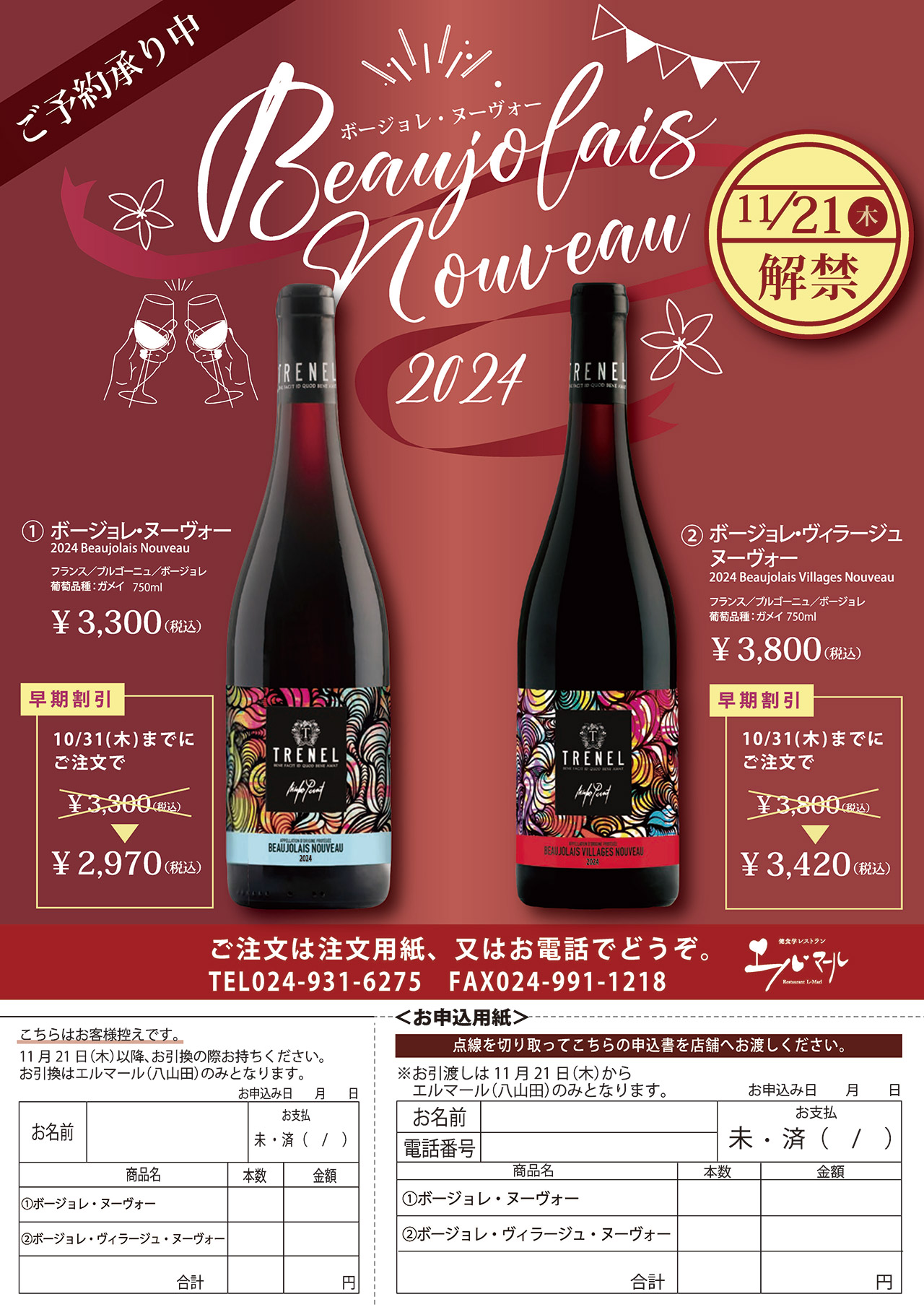 | 2025/11/7 | ★ボジョレー・ヌーヴォー★ 11月20日(木)解禁! | |