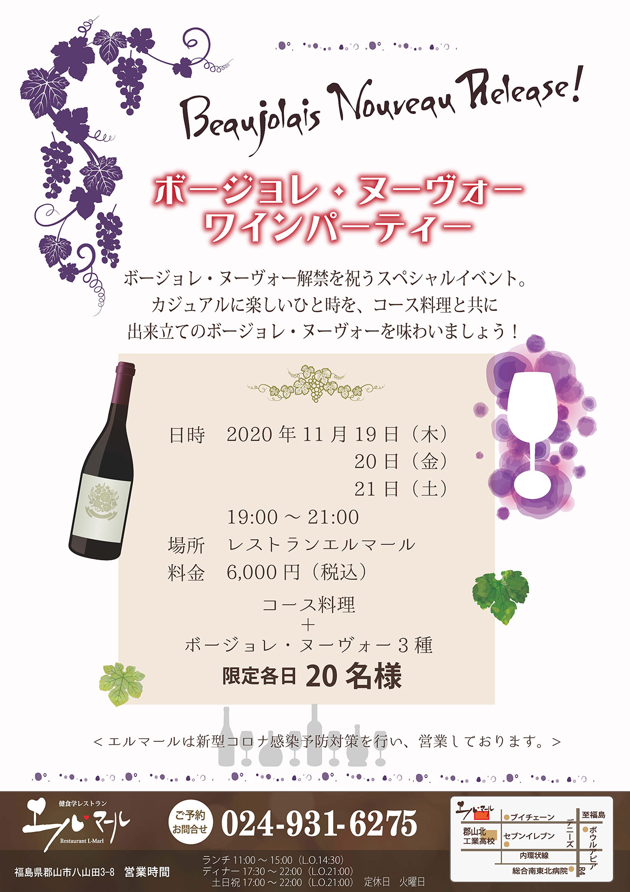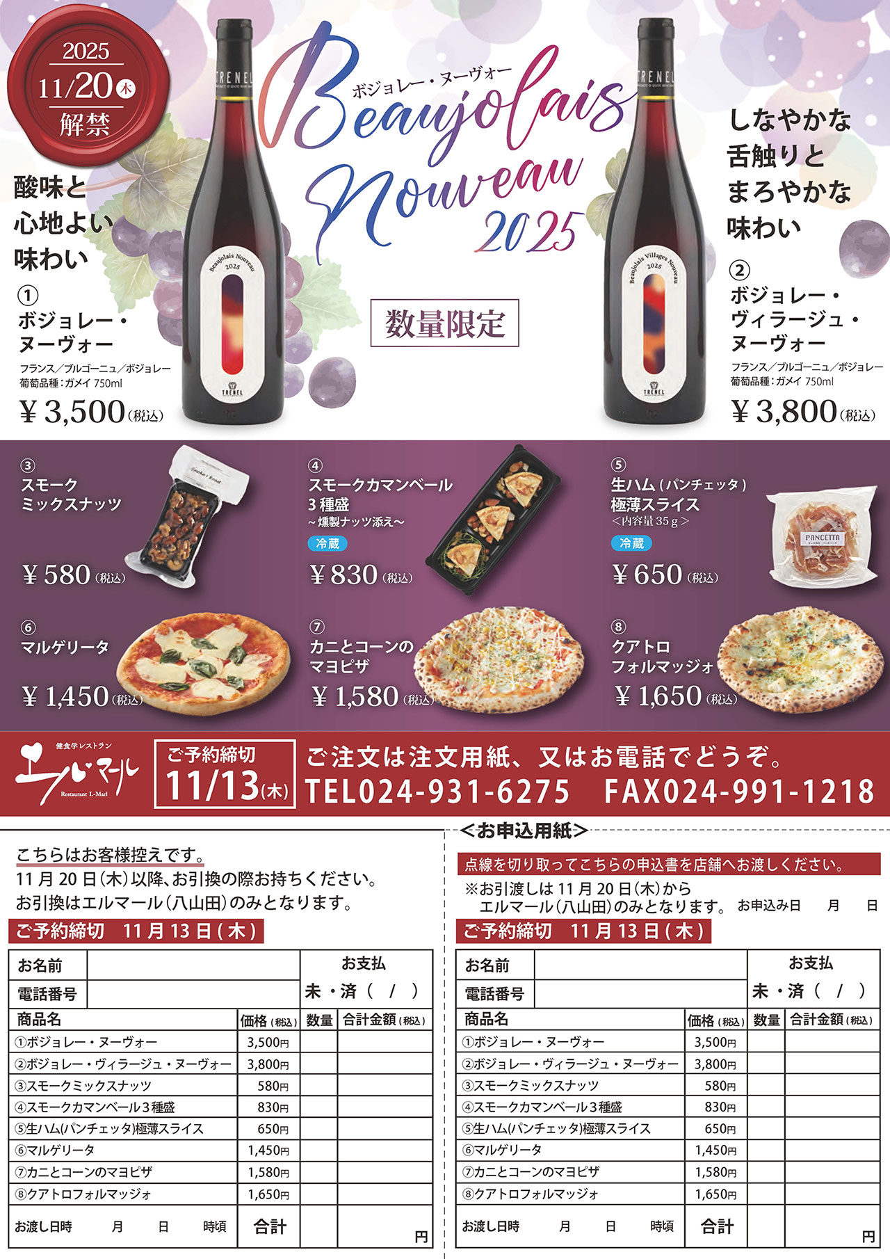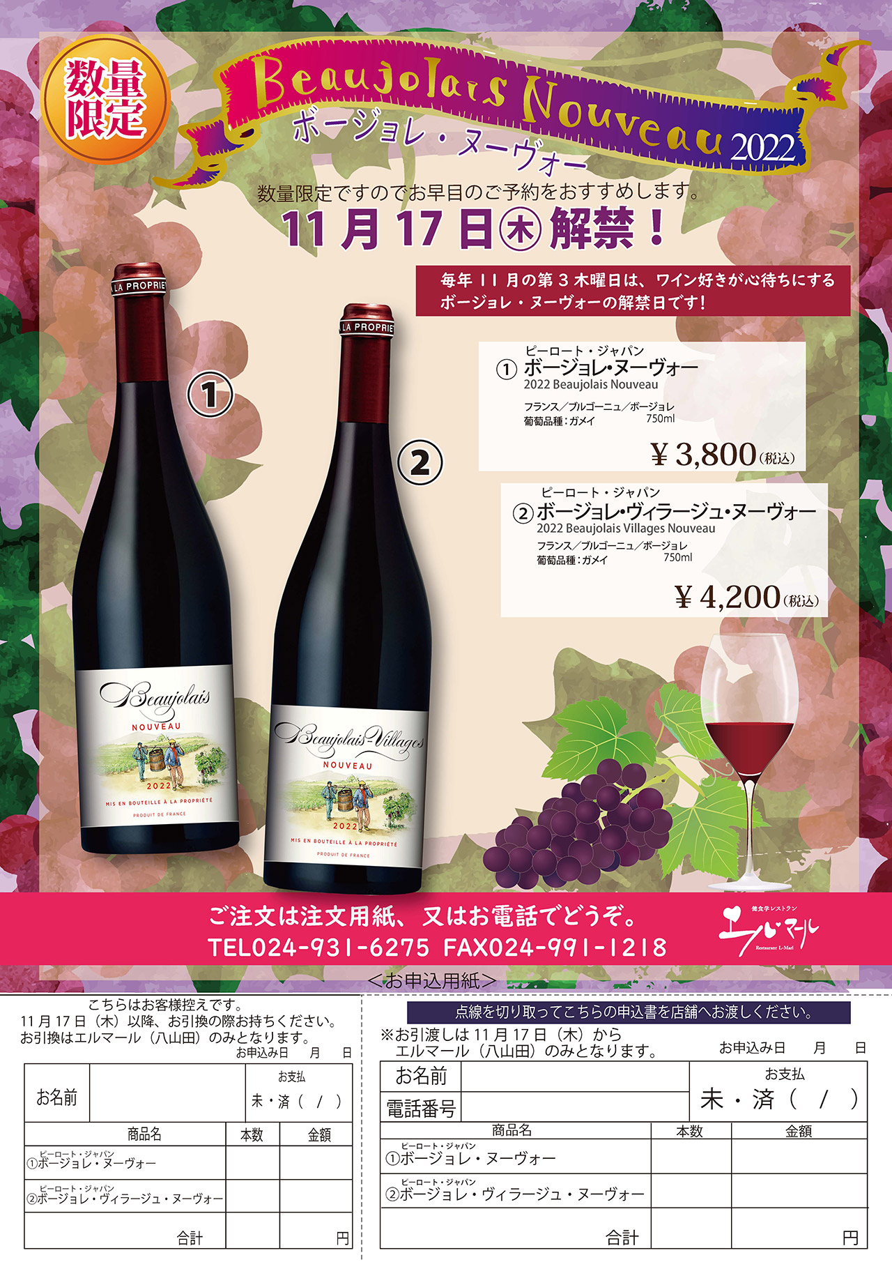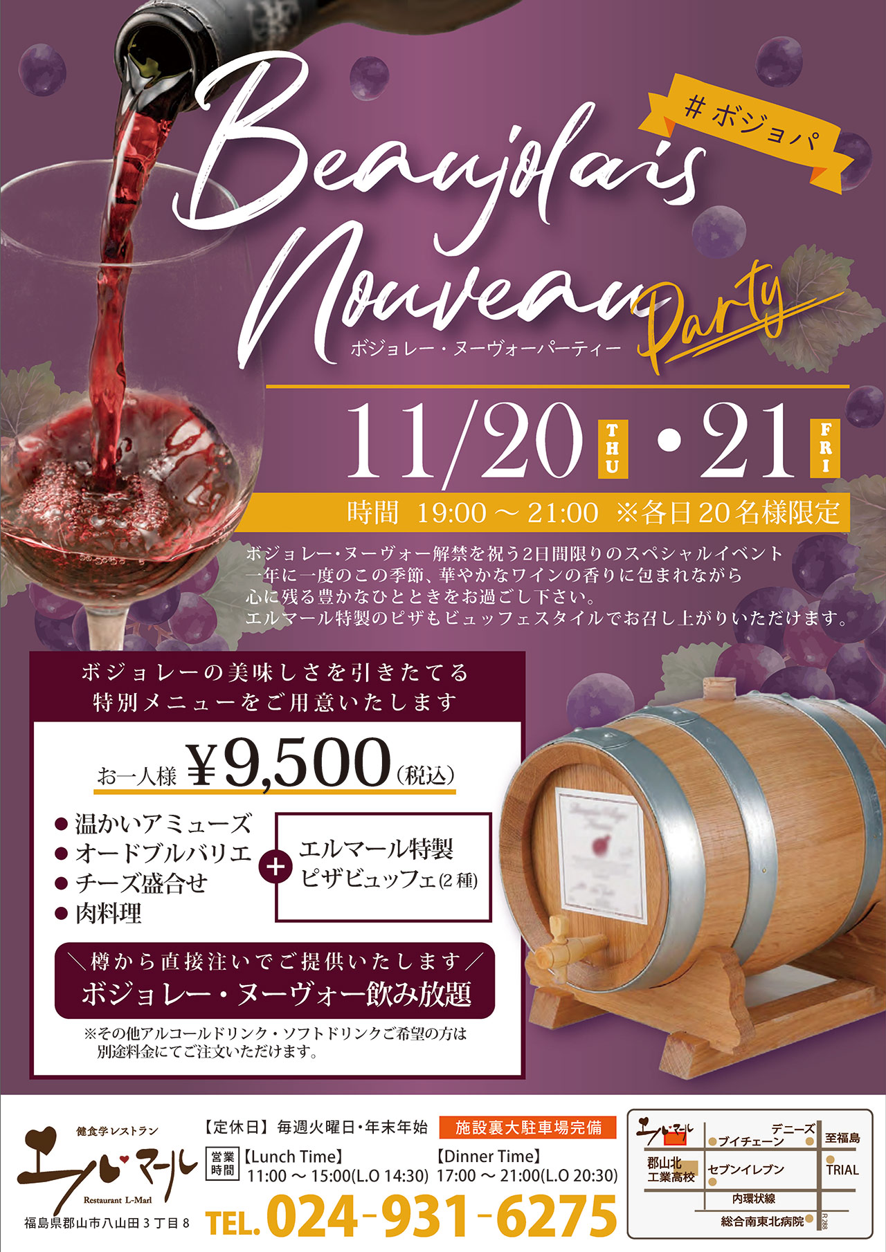| 2025/11/26 | ★ボジョレーヌーヴォー2025★ 数量限定 | |