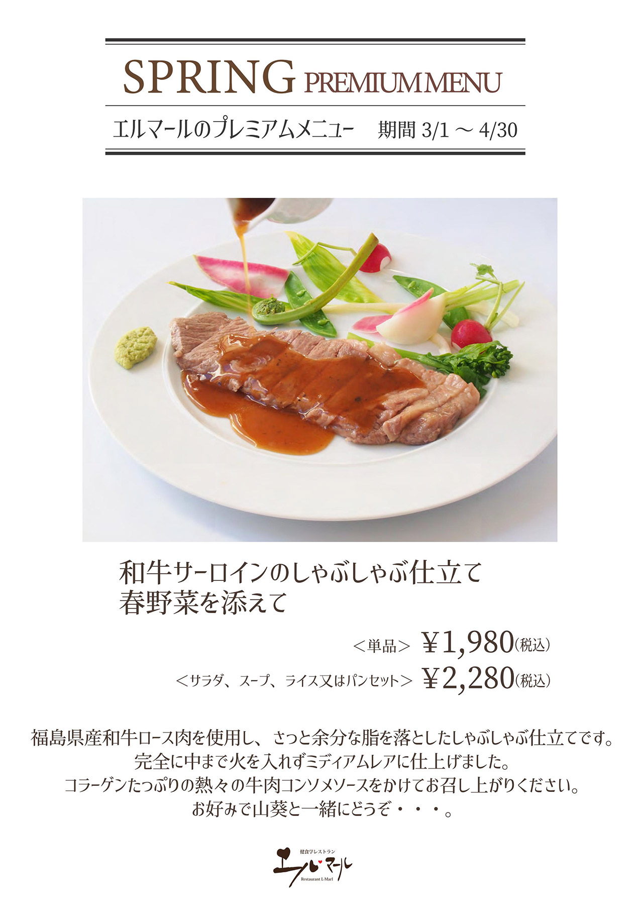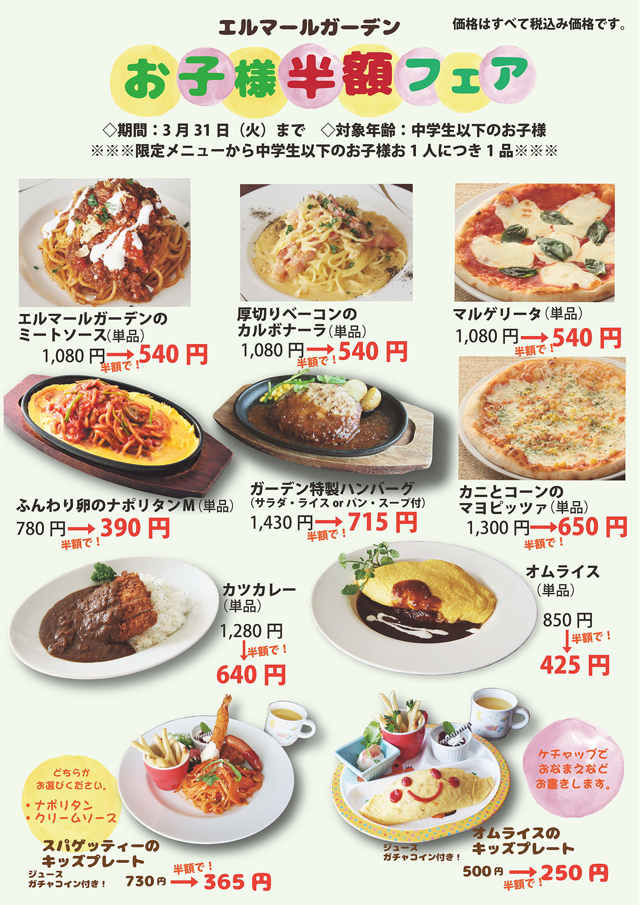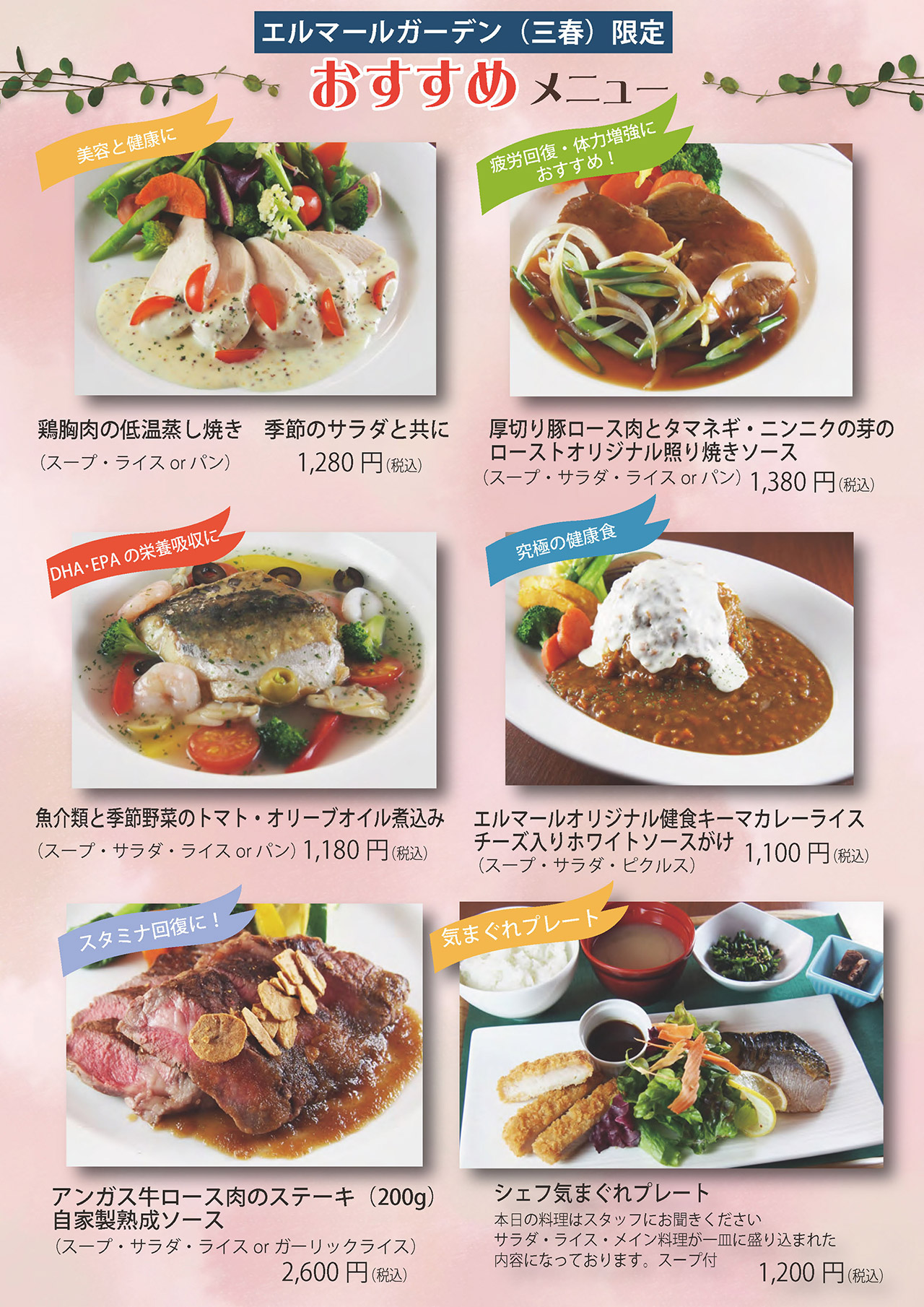 | 2019/3/20 | ★エルマールガーデン限定 おすすめメニュー★ | |