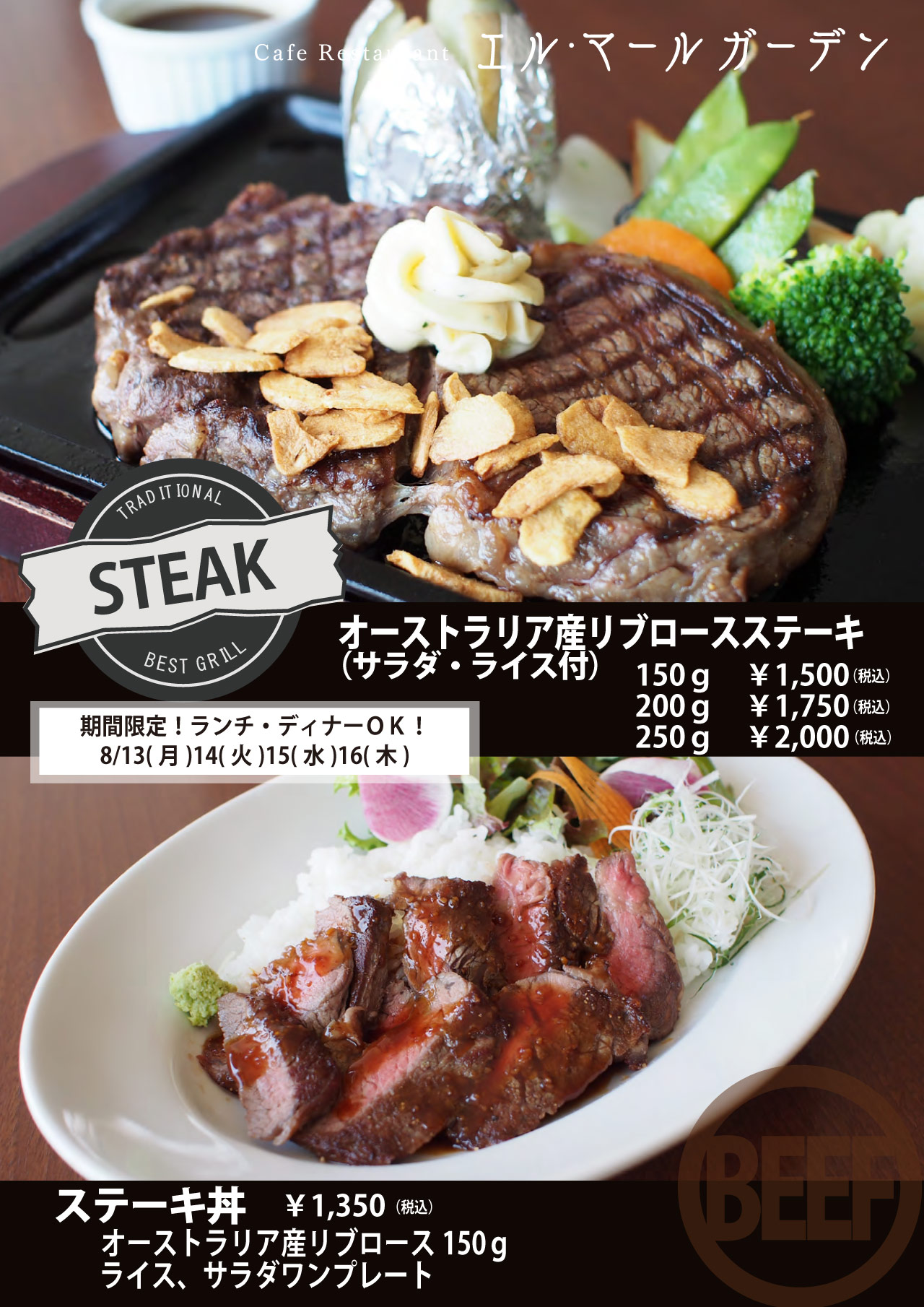 | 2018/8/6 | ★期間限定!8/13~8/16★ オーストラリア産リブロースステーキ・ステーキ丼 | |
