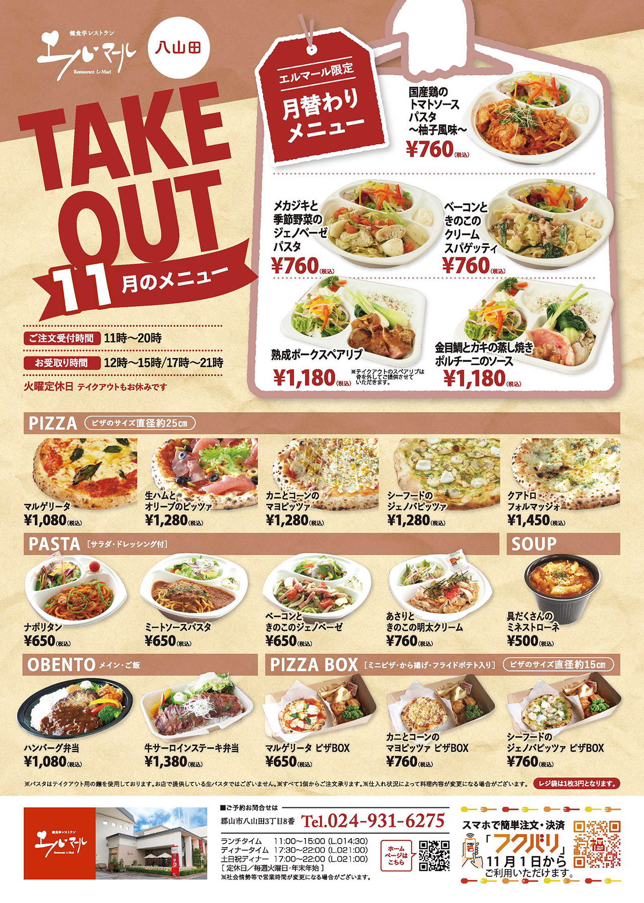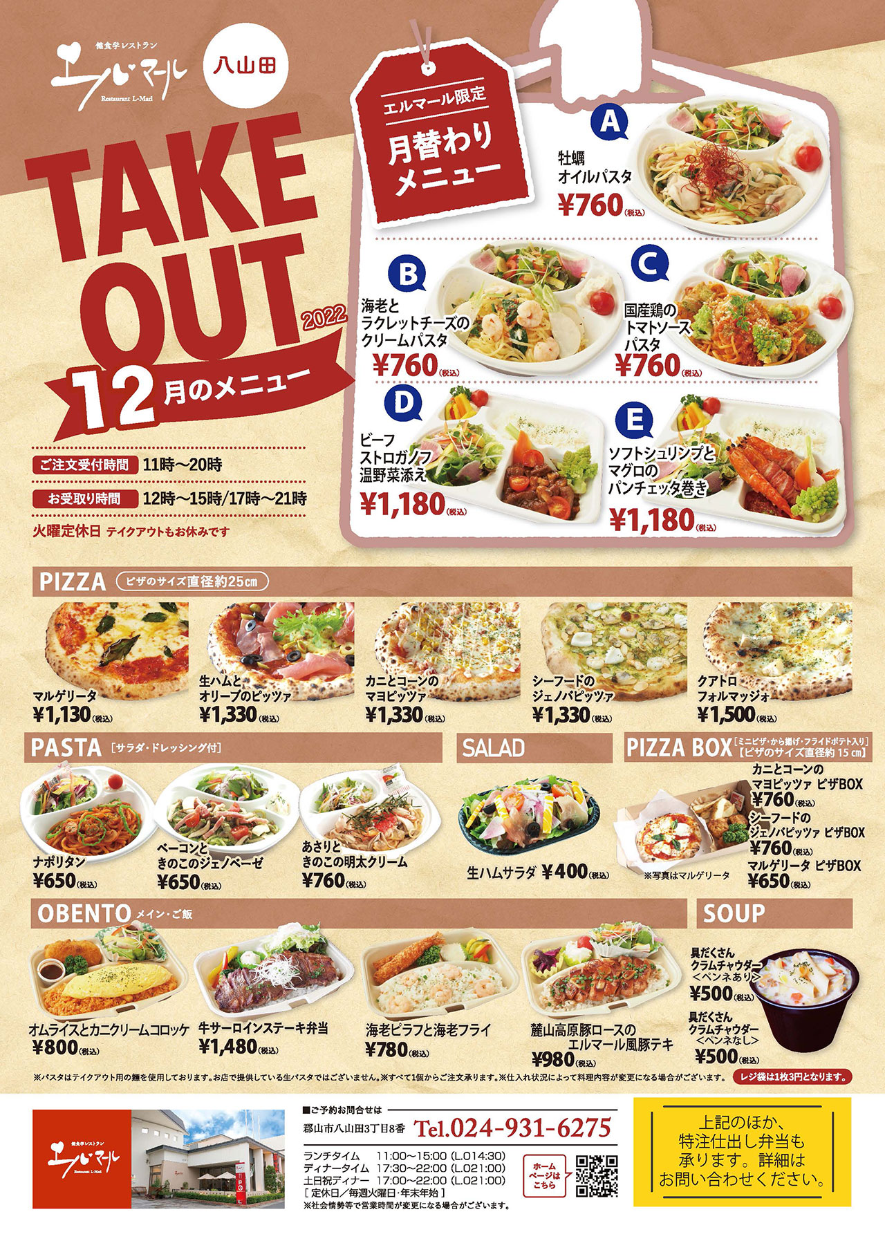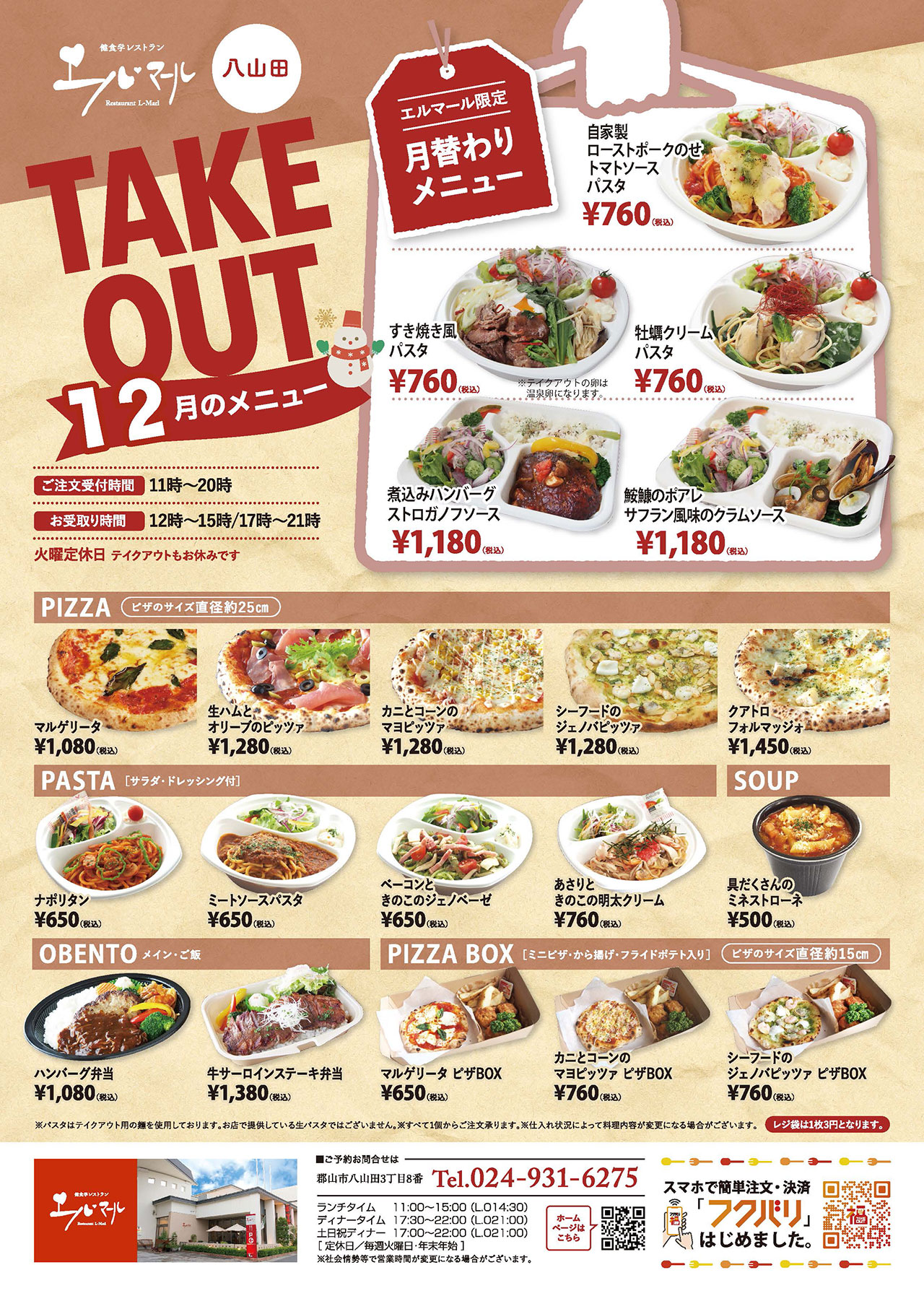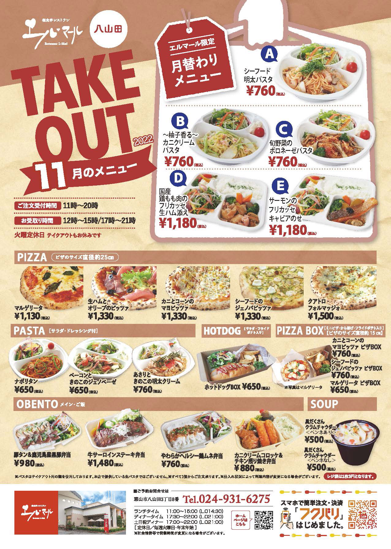 | 2023/11/28 | ★テイクアウトメニュー更新★ 【お持ち帰りできます】 【エルマール 12月のテイクアウトメニューはこちら】 | |