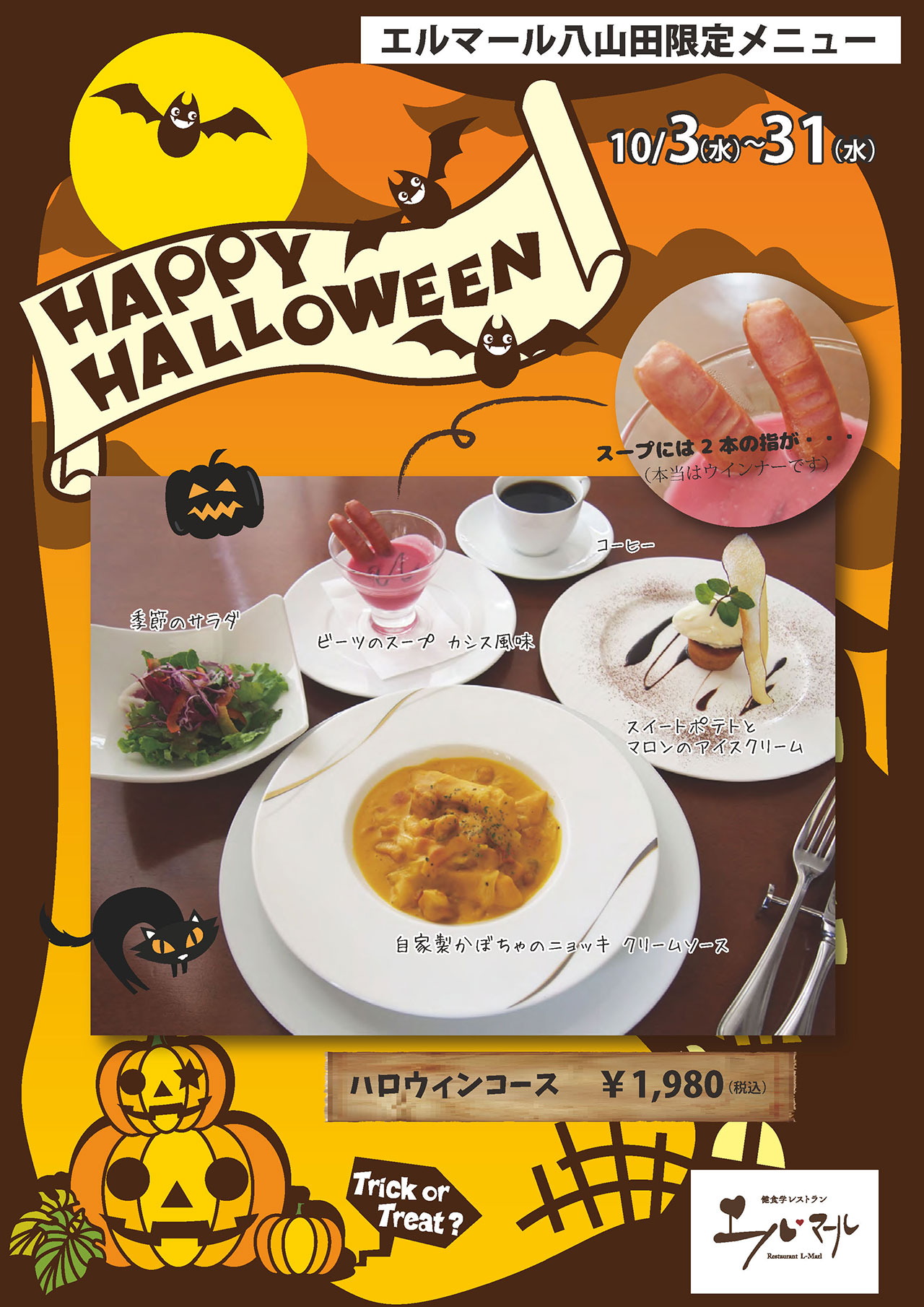 | 2018/10/1 | ★八山田限定メニュー ハロウィンコース★ 2018年10月3日(水)~31日(水) | |