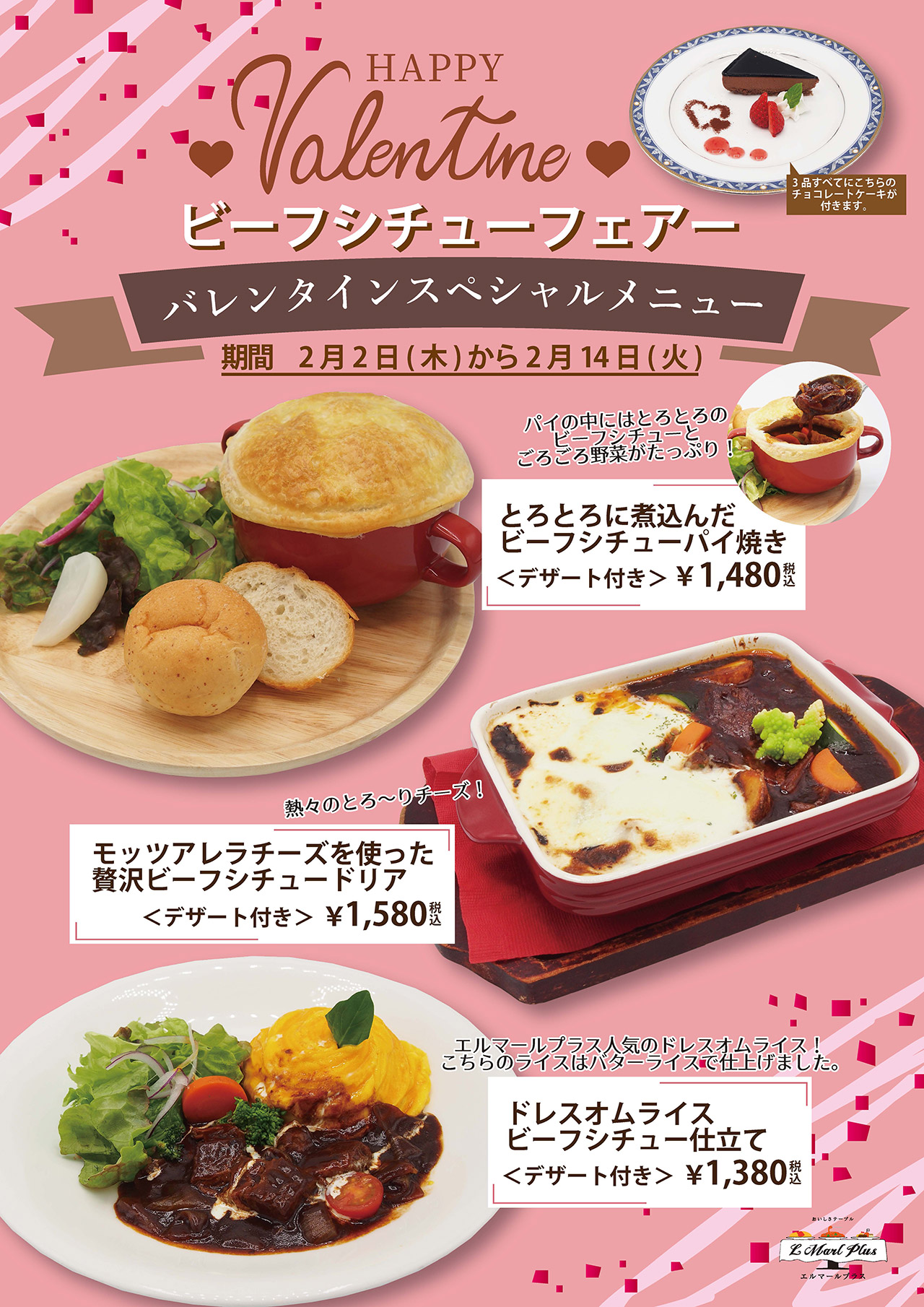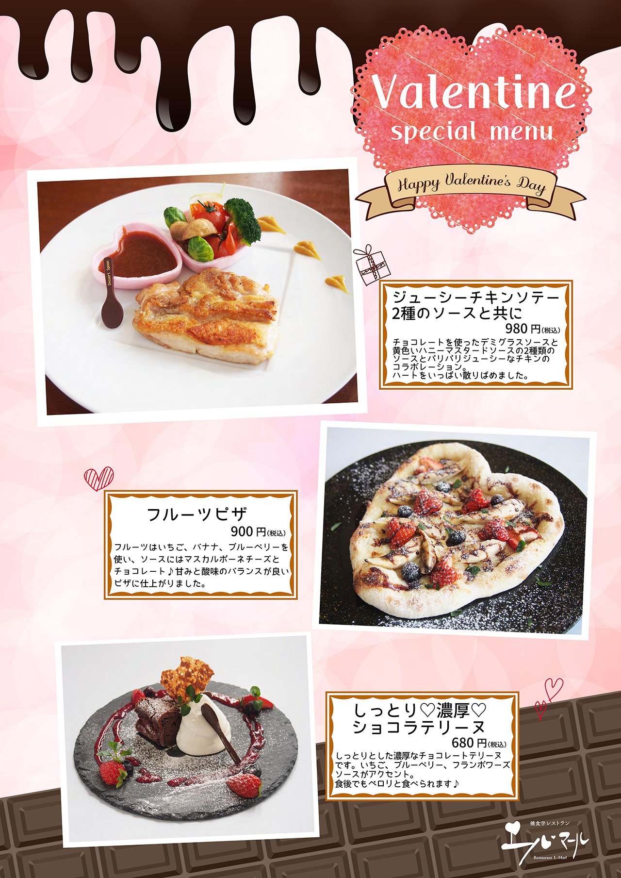 | 2019/1/25 | ★エルマール・エルマールガーデン共通バレンタイン限定コース★ ランチ・ディナーOK | |