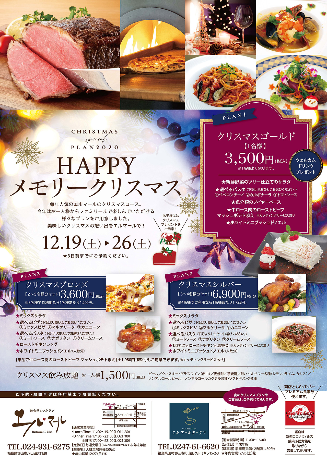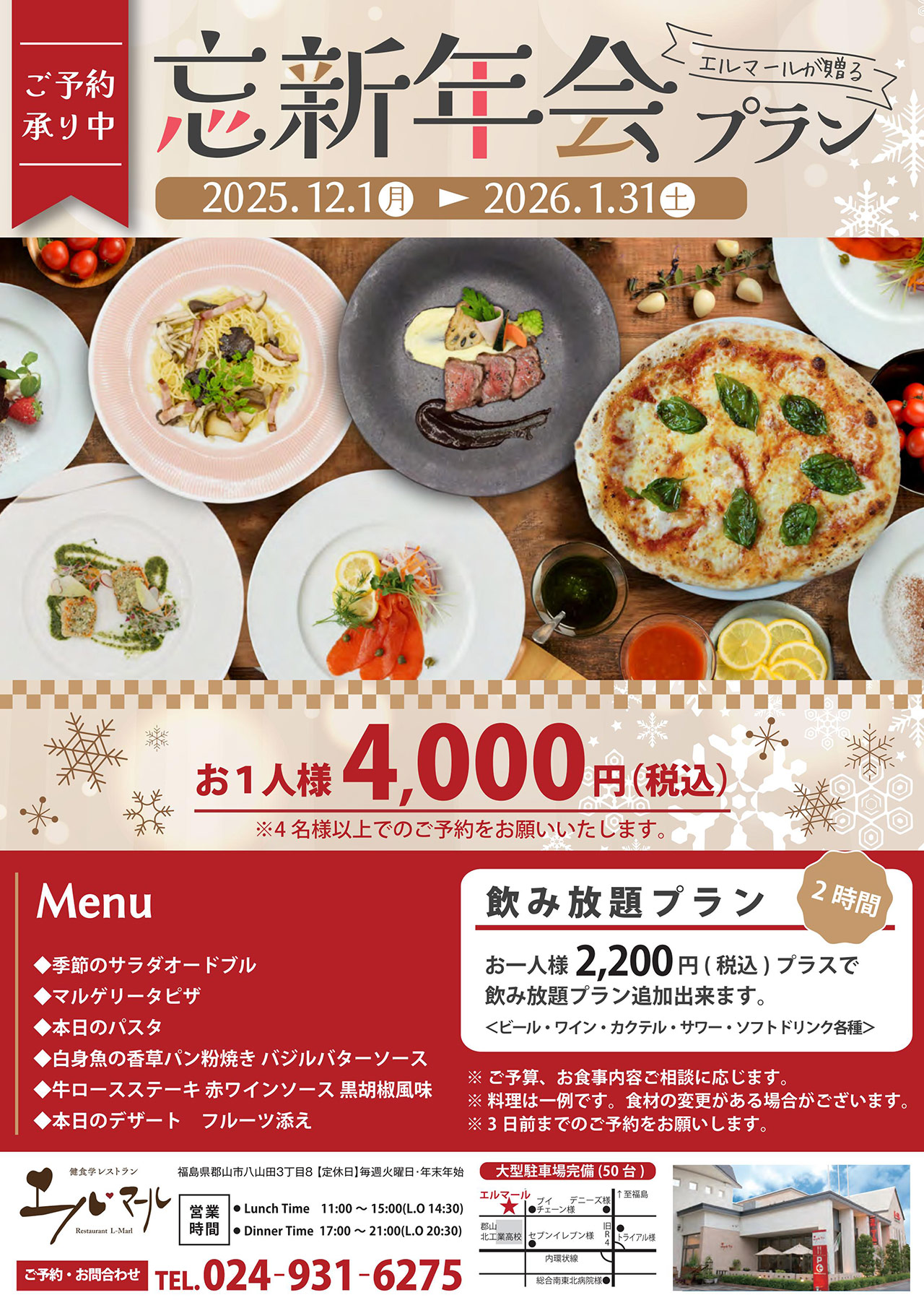 | 2025/11/26 | エルマールが贈る★忘新年会プラン★ 2025.12.1(月)~2026.1.31(土) | |