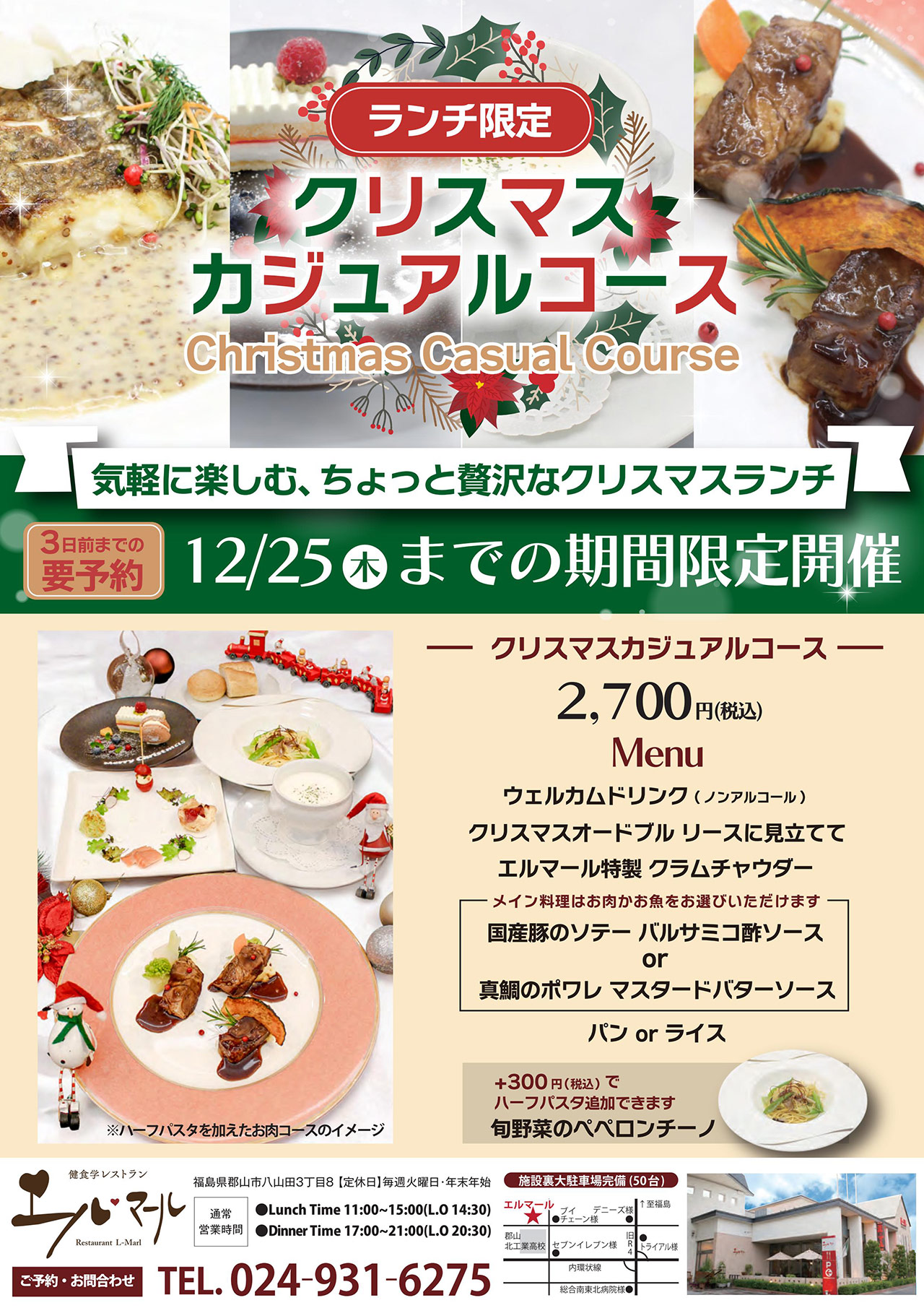 | 2025/11/26 | ★クリスマスカジュアルコース★ 12/25(木)までの期間限定開催 | |