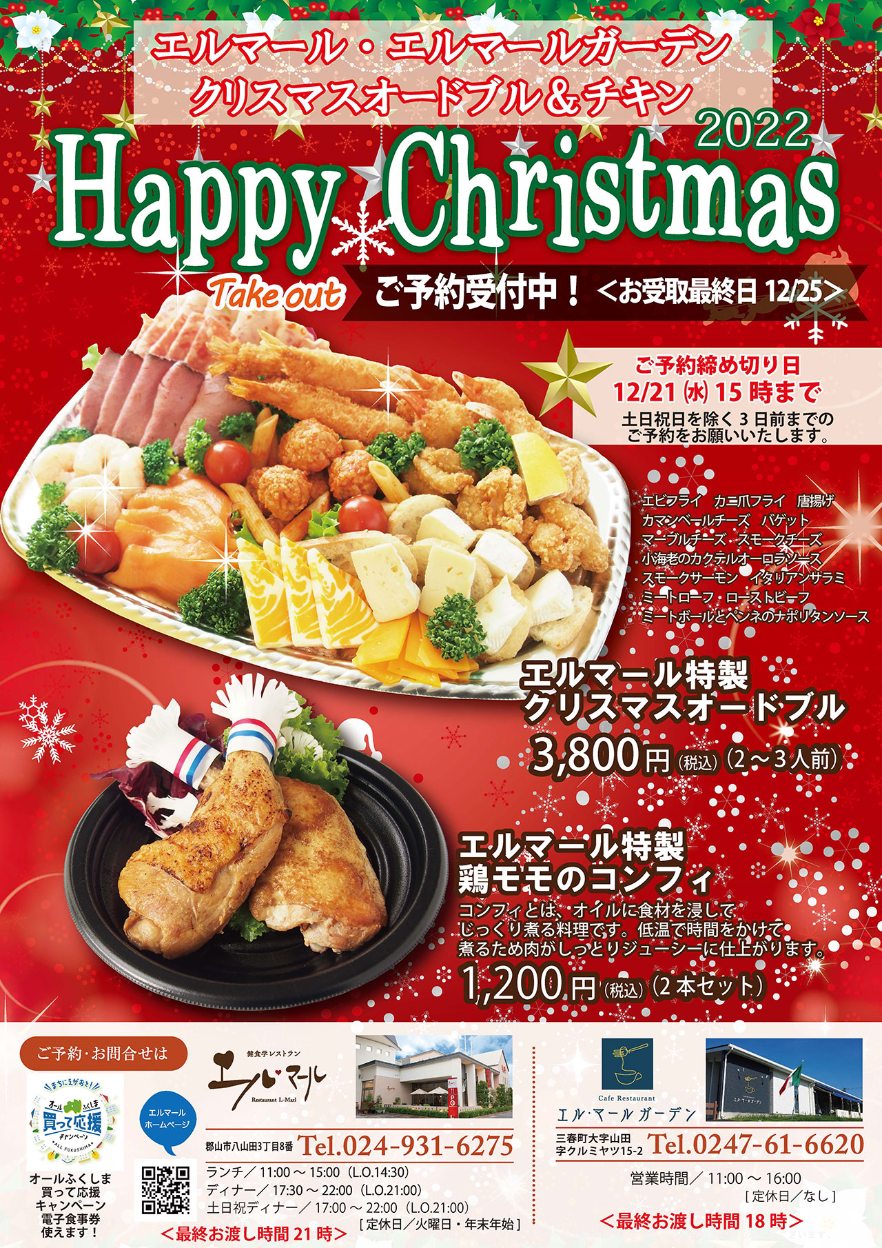| 2023/11/16 | ★エルマール クリスマスオードブル&チキン&ピザ★ エルマールにてご予約受付中! | |
