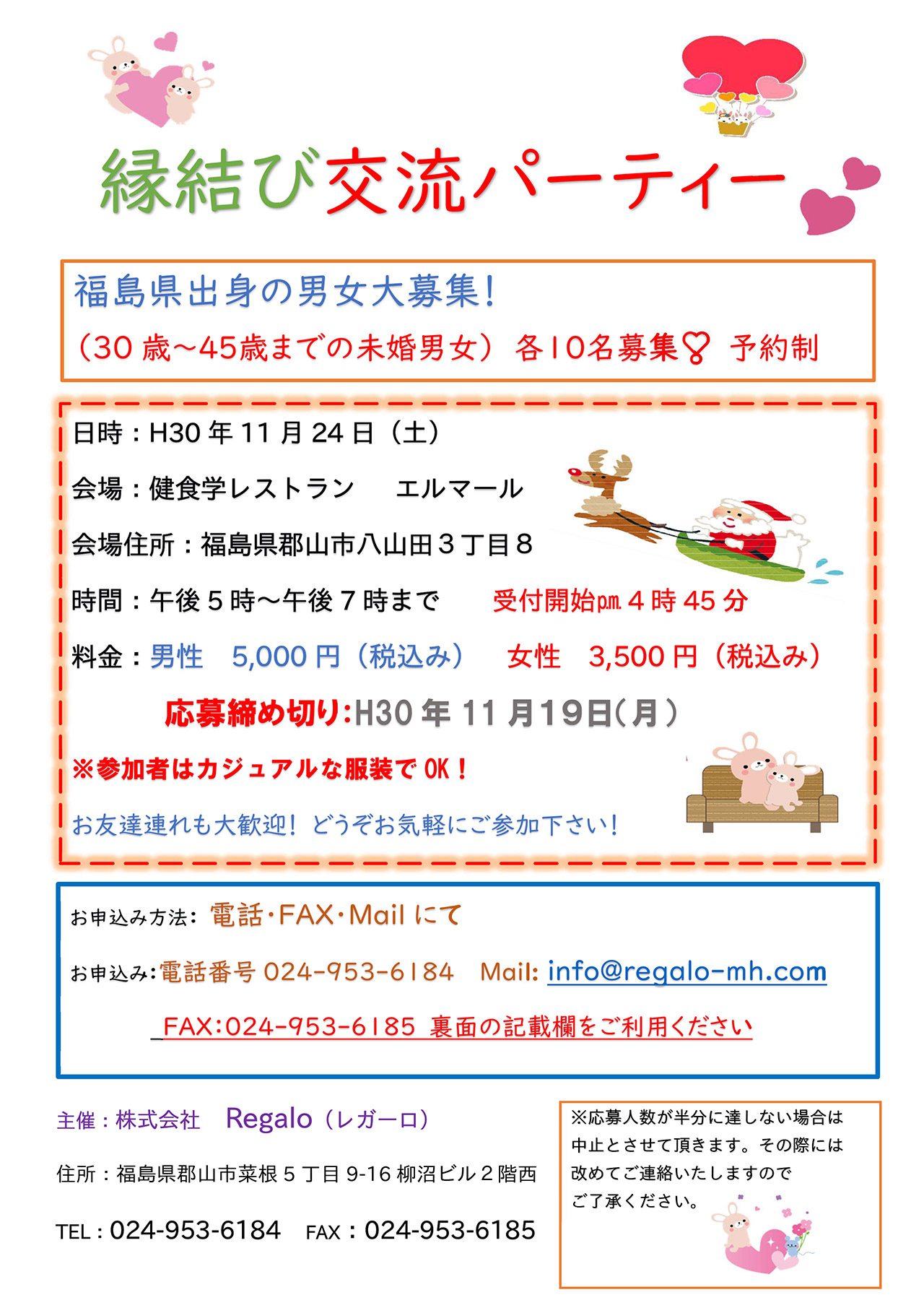 | 2018/11/6 | ★縁結び交流パーティー★ 福島県出身の男女大募集! | |