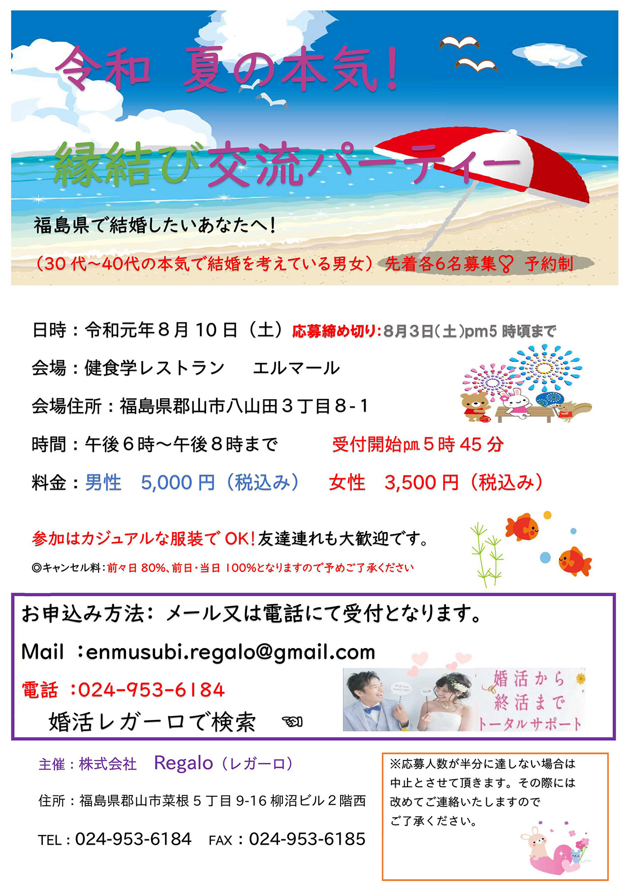 | 2019/7/1 | ★エルマール★ 【令和 夏の本気!縁結び交流パーティー】 | |
