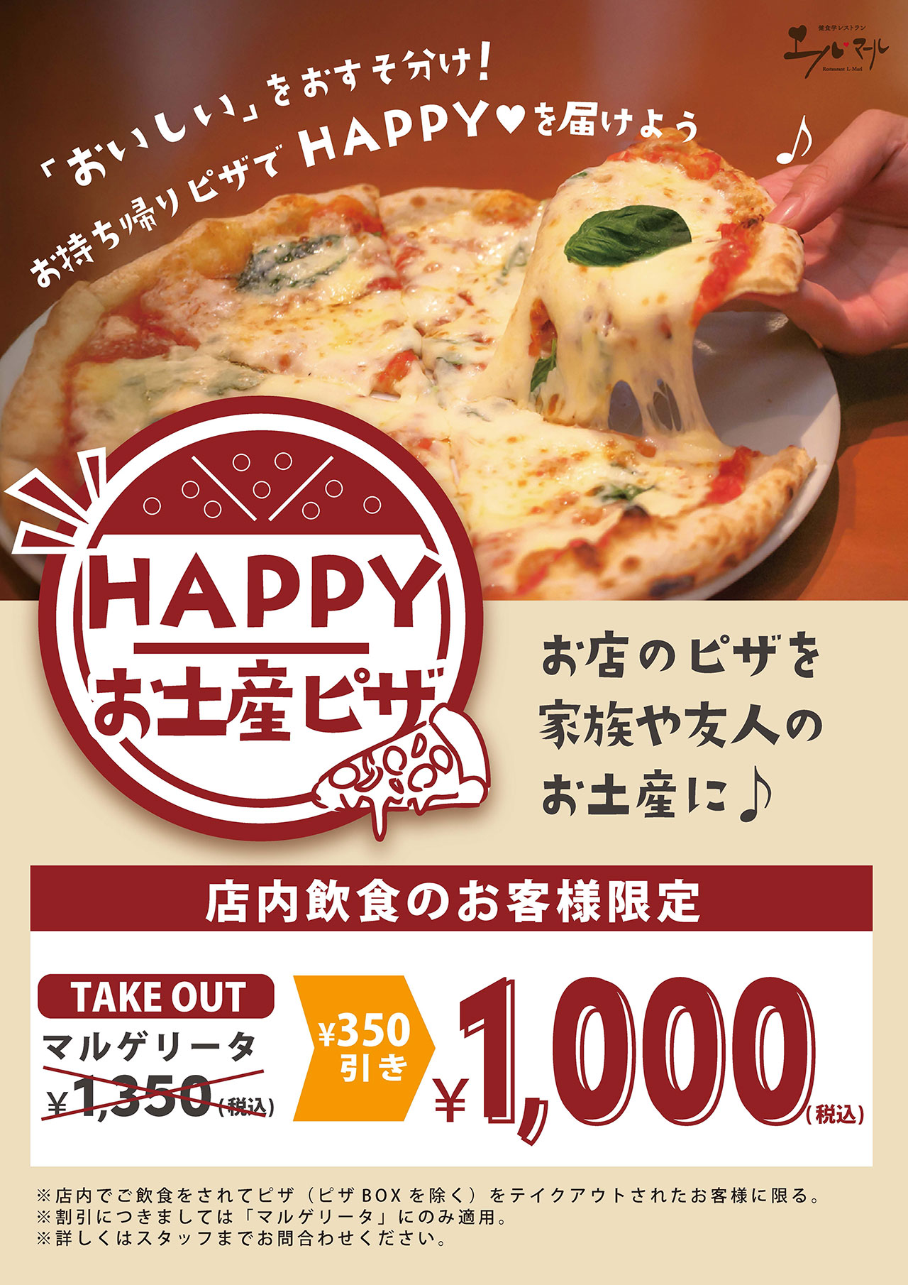 | 2025/3/1 | ★ハッピーお土産ピザ★ お店のピザを家族や友人のお土産に♪ | |