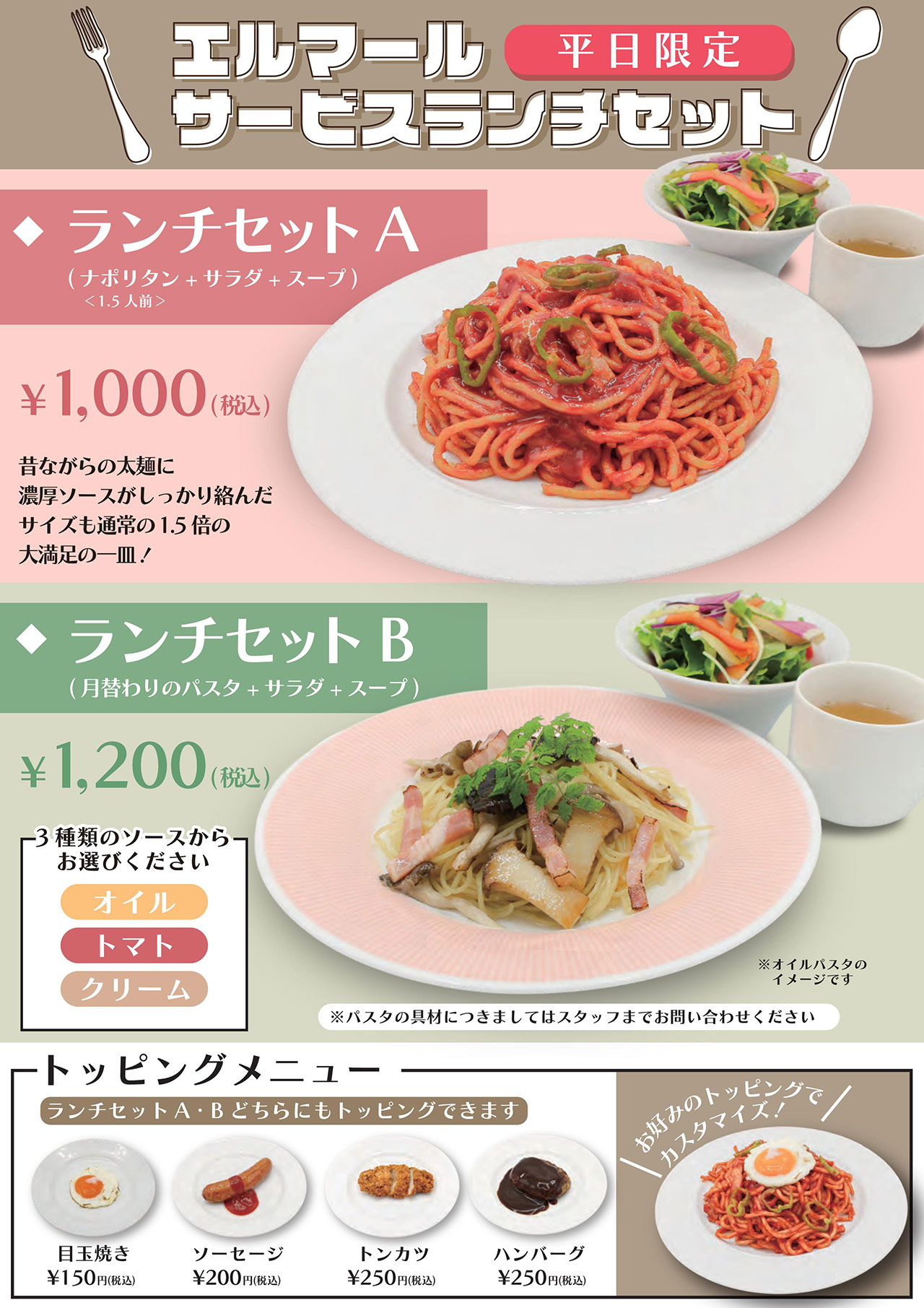 | 2018/2/19 | ★エルマール八山田限定★ おすすめパスタセット | |