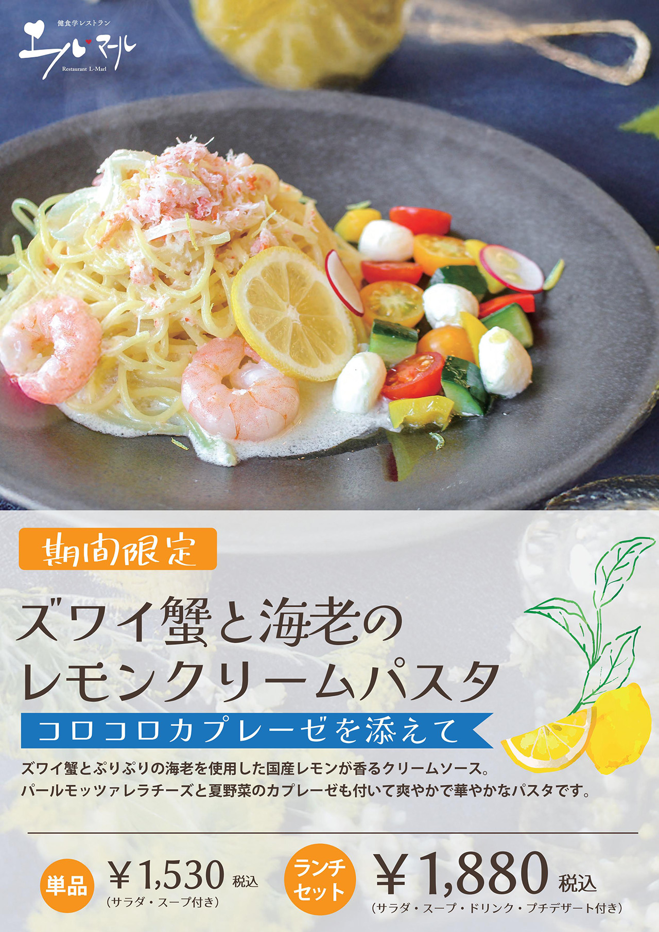 | 2025/6/2 | ★ズワイガニと海老のレモンクリームパスタ★ ズワイ蟹とぷりぷりの海老を使用した国産レモンが香るクリームソース。パールモッツアレラチーズと夏野菜のカプレーゼも付いて爽やかで華やかなバスタです。 | |