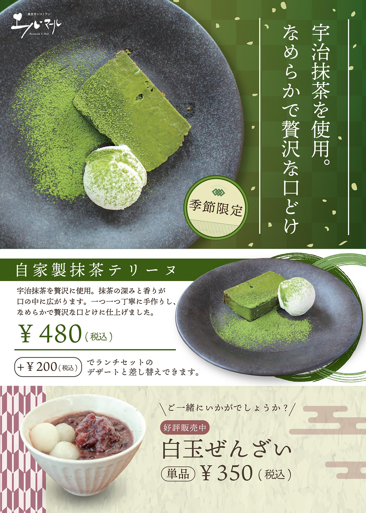 | 2025/6/2 | ★自家製抹茶テリーヌ★ 宇治抹茶を使用。なめらかで贅沢な口どけ | |