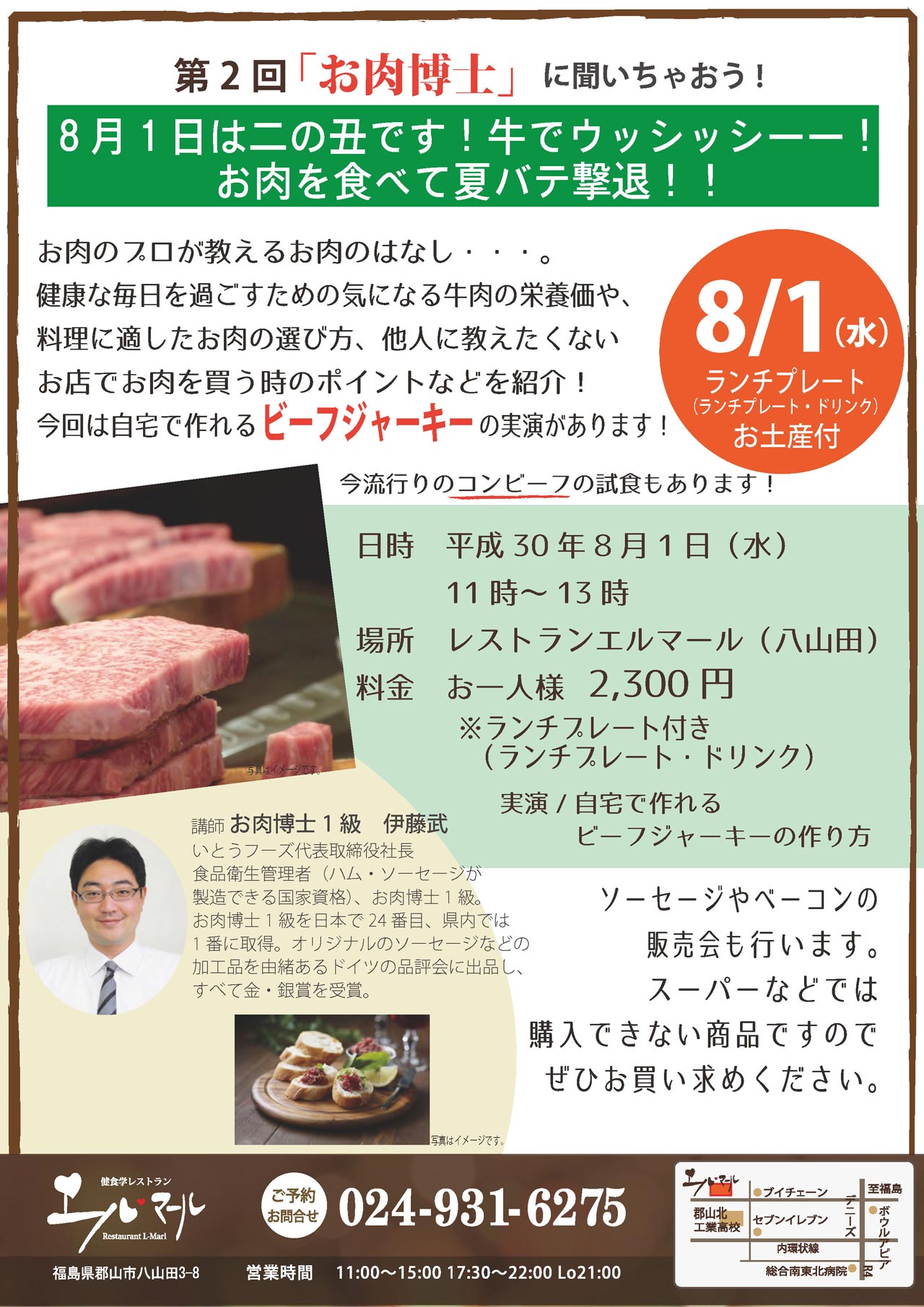 | 2018/6/21 | ★8/1 第2回「お肉博士」に聞いちゃおう★ お肉のプロが教えるお肉の話...。 | |