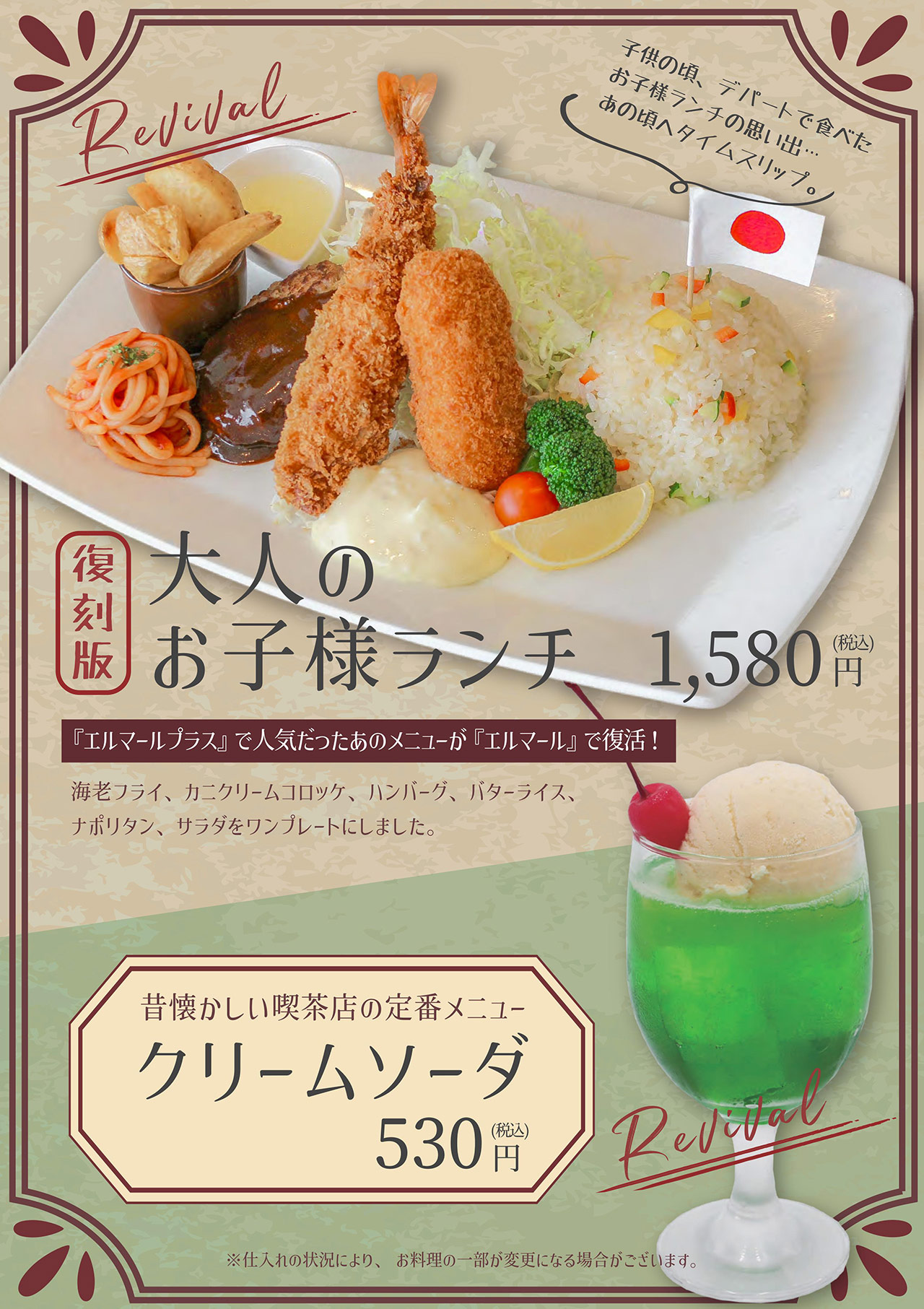 | 2024/2/20 | ★エルマール(八山田)★ エルマールプラスで人気だったメニュー「大人のお子様ランチ」をエルマールで復刻!! エルマール(八山田)にて2月22日(木)から販売開始となります。 | |