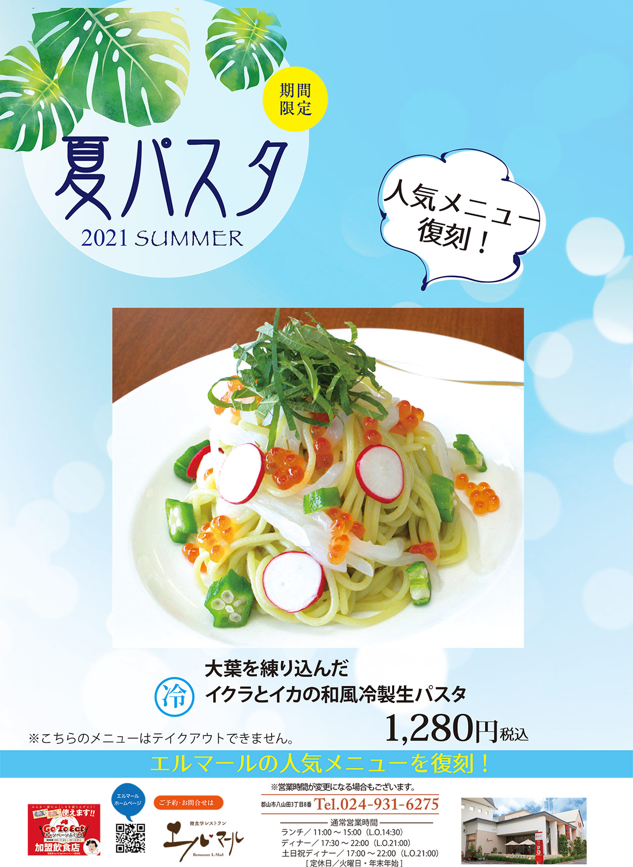 | 2024/6/29 | ★エルマール(八山田)★ 冷製カルボナーラ 【期間限定】7月1日(月)~8月31日(土) | |