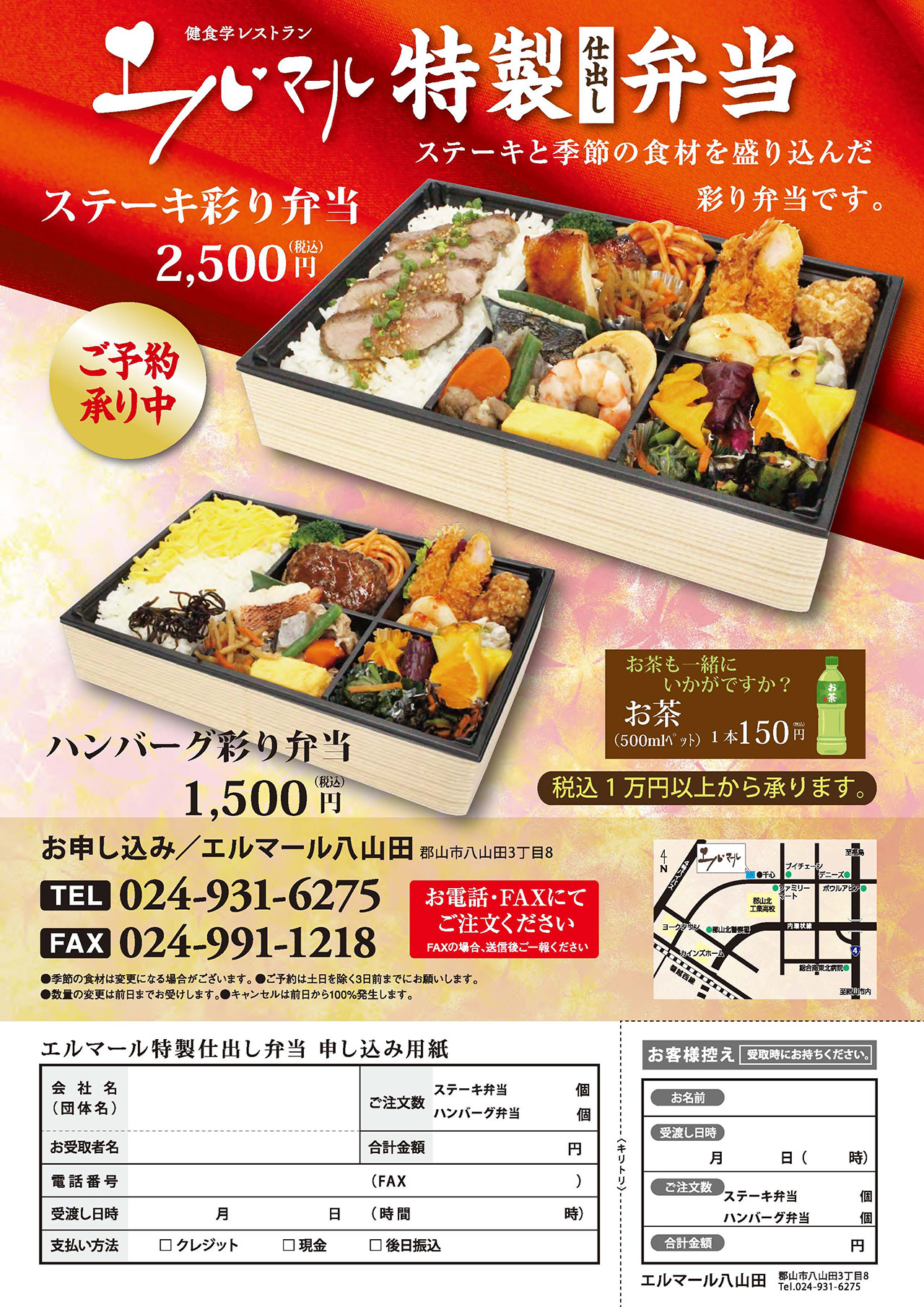 | 2024/9/6 | ★エルマール特製 生おせち★ 新年にふさわしい贅を尽くしたエルマールの「生おせち」をお届けします。ご予約は今がチャンス ≪ 早期予約割引 ≫詳しくはこちら | |